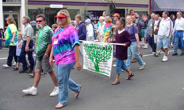 Lewis and Clark descendents marching in parade in Astoria, Oregon.