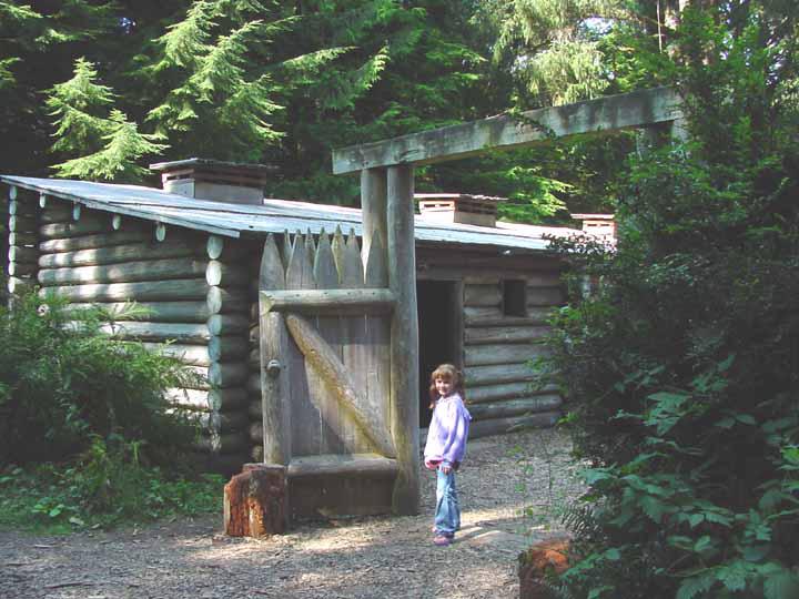 Katelyn standing at gate to Fort Clatsup.