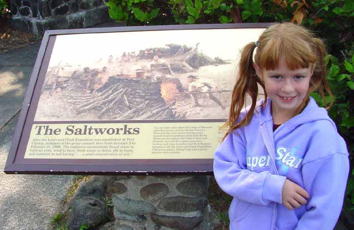 Katelyn standing at sign that describes the Lewis and Clark Salt Works.