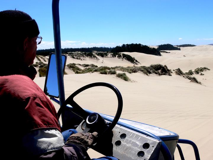 Riding the dune buggy through a few of the smaller dunes.