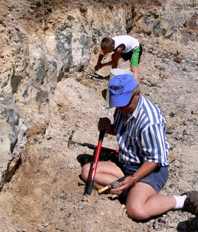 Dave examins Thunder Egg while Kyle digs in background.