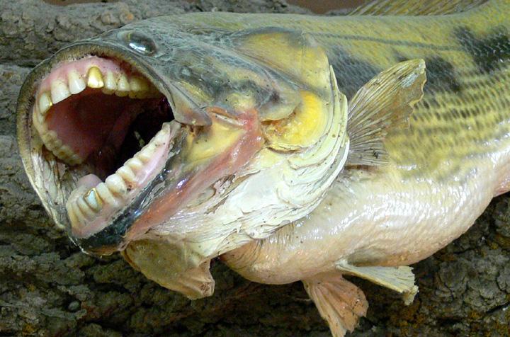 Bass fish mounted in Richardson's Ranch rock shop showing fine dental work.