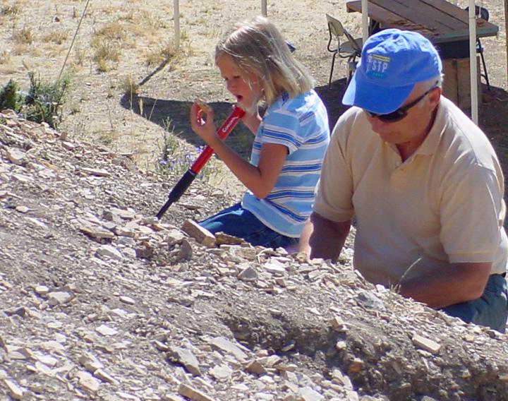 Summer and Dave searching for fossils.