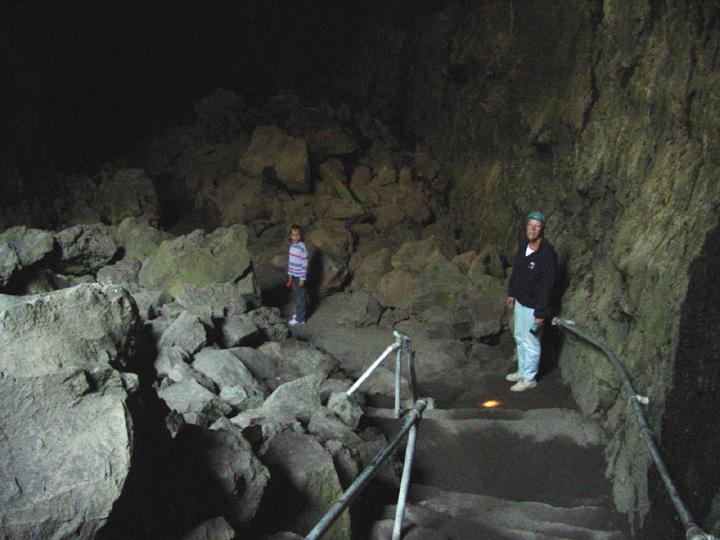 Summer and Diana at bottom of steps in Lava Cave.