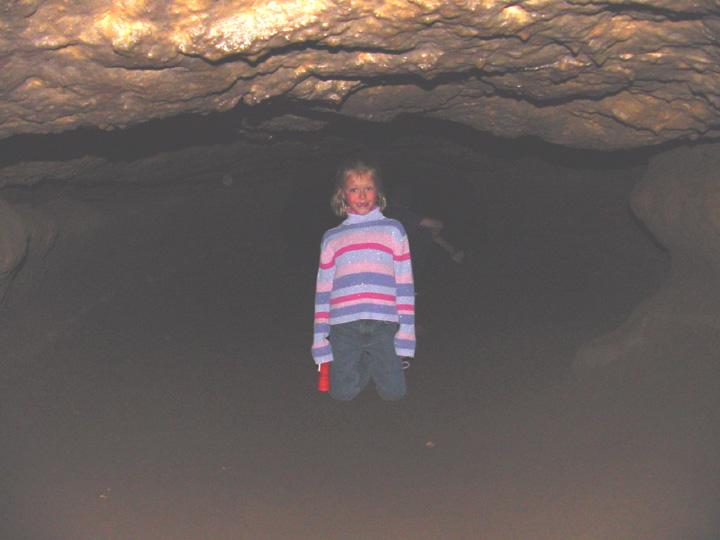 Summer on her knees near end of Lava Cave.